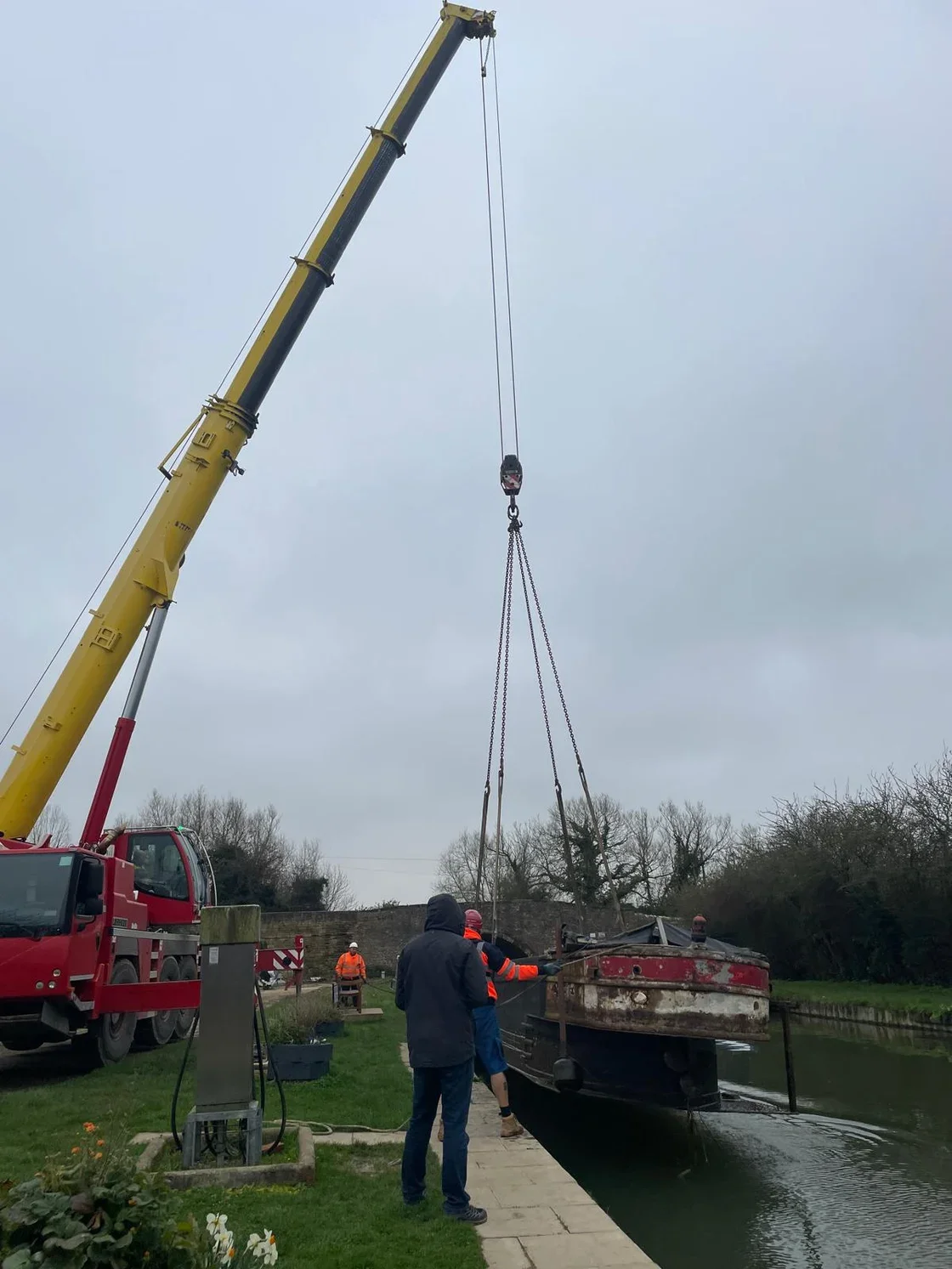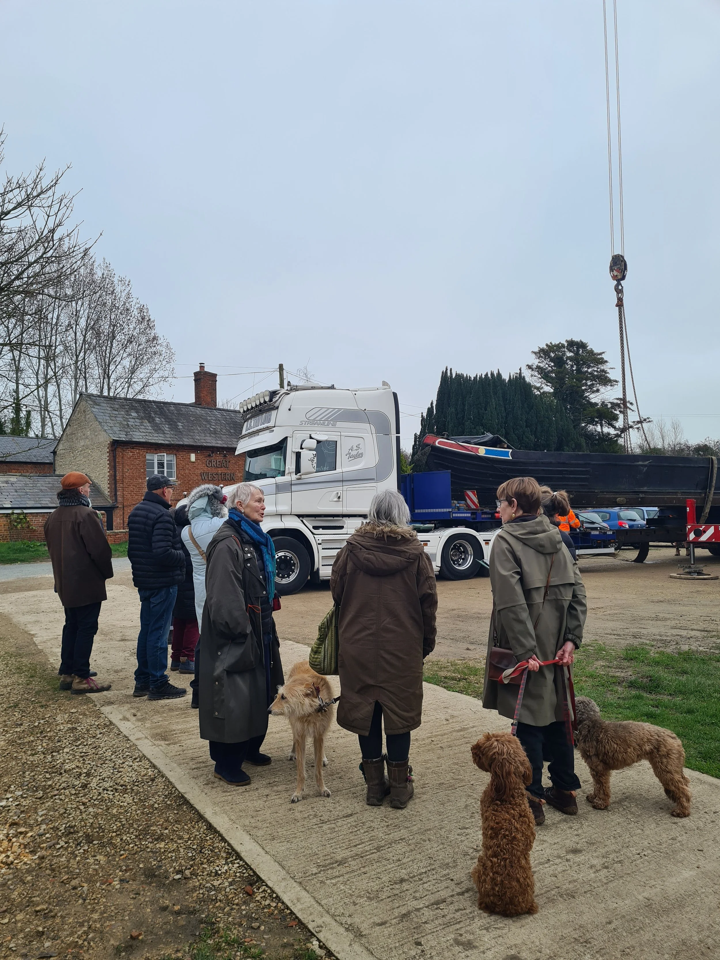 Kilsby broke free from the water when a crane hoisted her out of the canal at Aynho Wharf and on to a lorry.